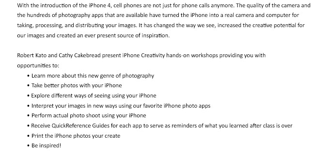 We have also taught our classes at Cabrillo College and the Center for Photographic Art in Carmel